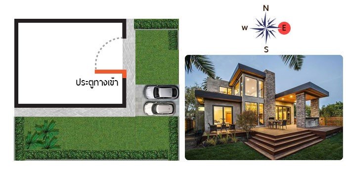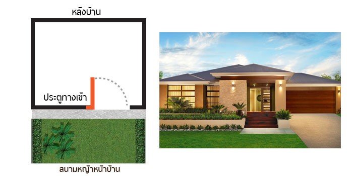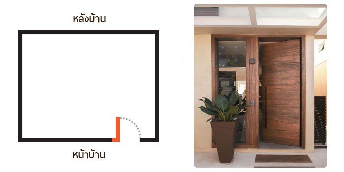 1. ประตูอยู่ตำแหน่งซ้ายมือของบ้านและผลักเข้าด้านใน